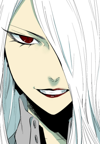 Sa-Ryun is androgynous by appearance but originally he is a male character. His androgynous looks backed by his other feminine characteristics (long nails & red lipstick) often make people mistake him for a female. He has waist-long, white hair and crimson red eyes. When he glares, his pupils become slits similar to snake eyes.